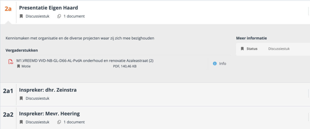 Tijdens de presentatie zitten we op de publieke tribune. U hoeft zelf niets te zeggen, maar uw aanwezigheid is al heel belangrijk. De stichtingen Oud Duivendrecht en Vrienden van Duivendrecht spreken in, zoals u op de agenda kunt zien. Ook is de bestuurlijke brief (annotatie) van vorig jaar augustus 2024 bij de stukken opgenomen.